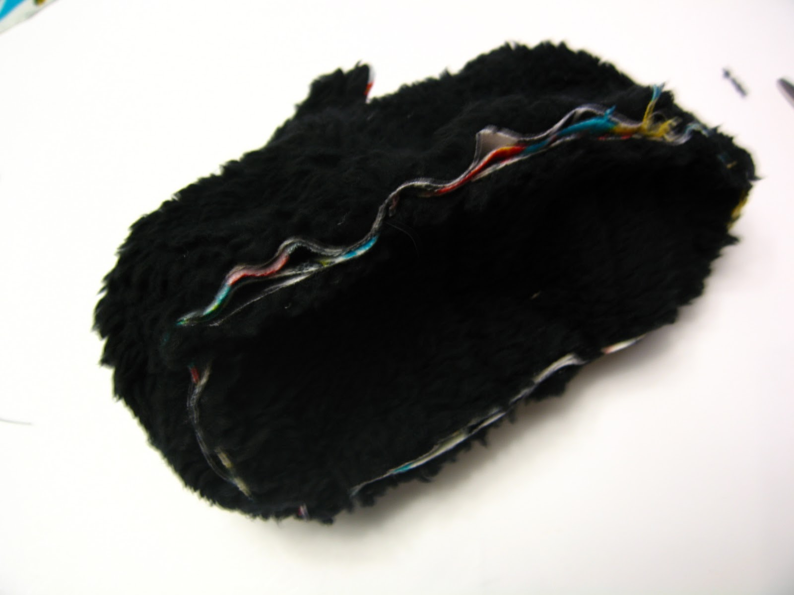 | Then when you turn it right side out it should look something like the picture above. (a really weird platform slipper ha ha) I also turned under the remaining edge and sewed it in place. |