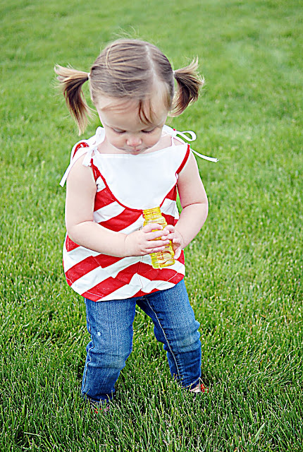 I love the stripes & especially the buttons on the back. I love your little girl's pig tails too!