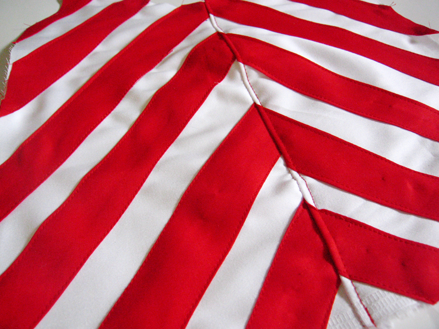 To match up the sides I lined up one of the front pieces to the back and made sure all the stripes matched up. Then if you lay out the whole top seam to seam everything should match up.