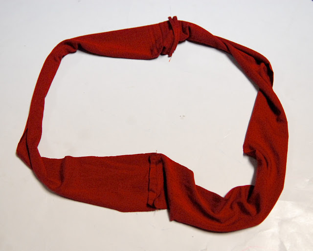 Then out of some scraps I cut strips that were 1.5X wider than the skirt piece. Then I sewed them together at the sides to make a tube just like the skirt piece You will need as many rings as you have lines drawn, and they should be long enough strips that they over lap the ruffle below it. Since it is knit you don’t have to finish the edge and cutting them imperfect adds to the charm of the top so don’t worry about being perfect here. Then you want to gather the top of each strip. Need help gathering? Check here.