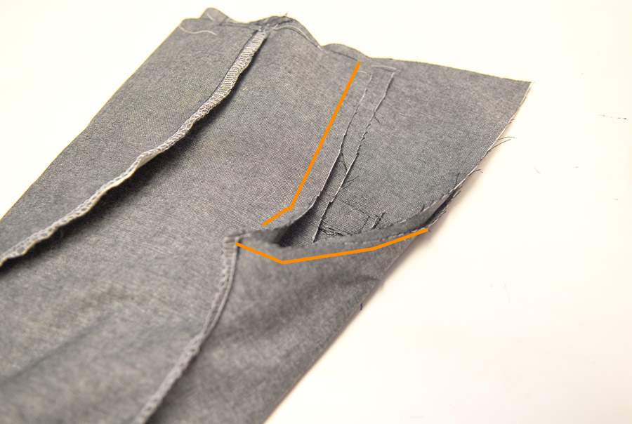 Start by sewing right sides together, the pocket facing to the front of the pant.