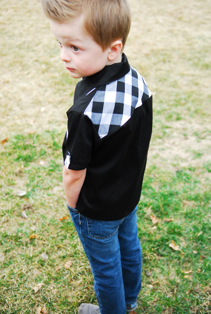 My favorite detail really is the buffalo check for the back yoke that I cut on the bias for interest. I love the details of the shirt the most. Proving sewing for boys can be fun and hip.