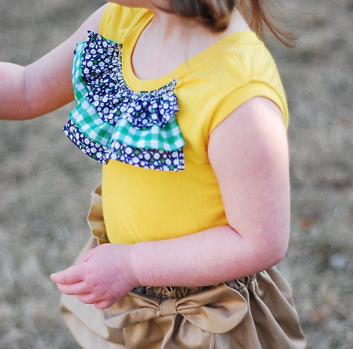 Oh, man. I just found this blog through pinterest. Is there a LOVE button? I hope my pregnant friend is having a girl so I can make a onesie with this ruffle idea. So cute! Have you written any posts about getting sewing/crafting done with a baby in the house? 😉 Looking forward to reading more!