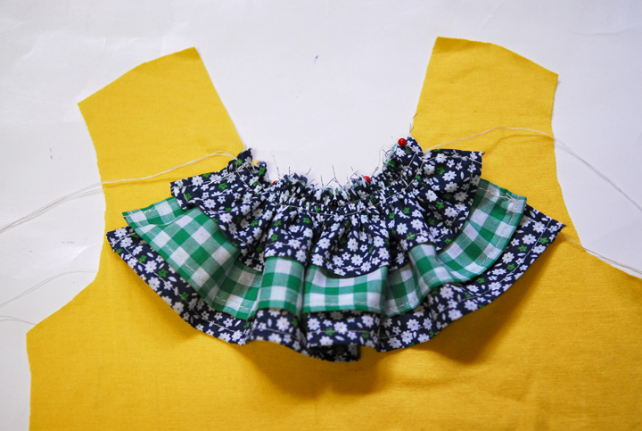 Sew the ruffle along the front neckline.