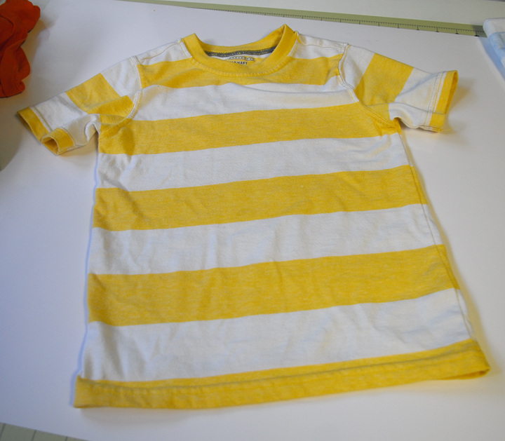 So I started with this striped tee from Old Navy, It was fine except for the hole in the back, this would be great for tees with stains, or other marks.